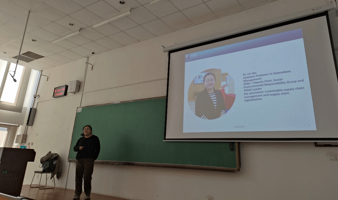 12月26日,英国诺丁汉大学商学院运营管理专业助理教授、联合国Principles for Responsible Management Education(PRME)诺丁汉大学商学院负责人武琳在A01-N305为商学院2022级本科生讲授了《运营管理理论及其应用》专题导论课。