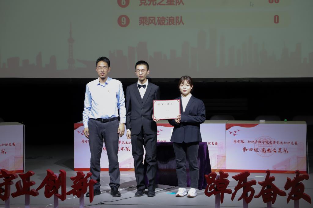 为深入学习宣传贯彻党的二十大精神,巩固党史学习教育成果,提高学史明理、学史增信、学史崇德、学史力行的思想觉悟,商学院、知识产权学院“永远跟党走 奋进新征程”党章党史知识竞赛于11月20日18:30在E03大礼堂举办,商学院、知识产权学院党总支副书记兼副院长赵博,党总支组织员丁晓梅,团委书记肖启出席本次比赛。