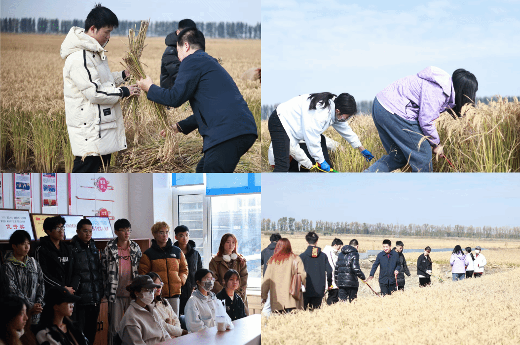 盘锦稻占技艺传承人王洪阁引领学生们漫步稻田,详细讲解稻米深加工过程与丰富的产品品类,同时全面传授水稻生长过程和种植知识。小房村村支部书记齐野以及驻村第一书记王凯群组织同学们亲身体验收割劳作,并带领大家前往大米加工厂,深入学习稻谷晾晒、脱粒等后续处理方法。