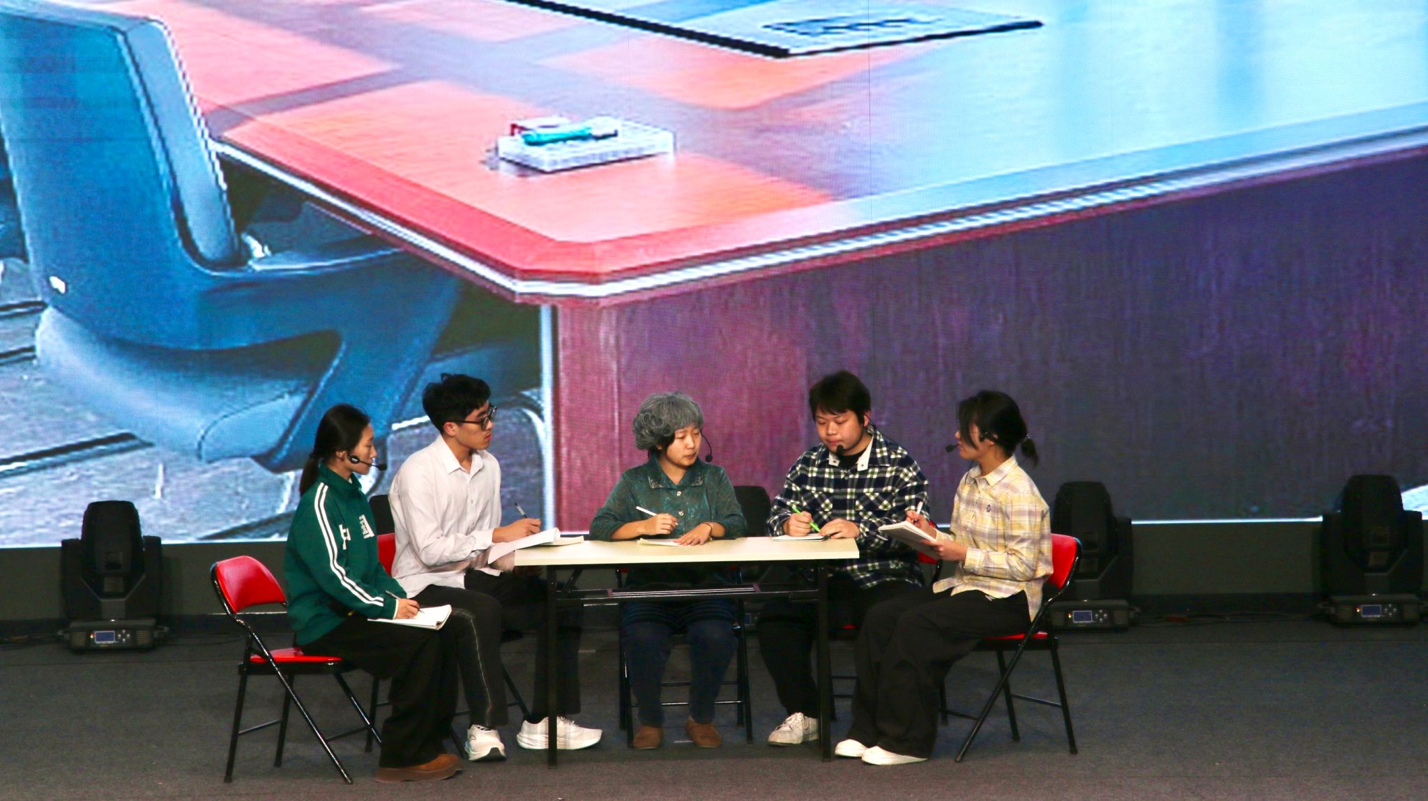 为纪念中国人民抗日战争暨世界反法西斯战争胜利80周年,持续深化“沉浸式”理论学习品牌建设,商学院于12月3日上午在E03大礼堂组织开展“见字如面”红色家书舞台剧大赛(第六季)决赛。学院党委书记郭永欣,学院教工党支部委员张倩、李鹏升,化工海洋与生命学院辅导员陈玉阳、郭庆,学院学办辅导员王常有、赵博、于日新出席本次活动并担任现场评委。学院全体学生党员、发展对象候选人以及2025级学生共计200余人现场观摩。