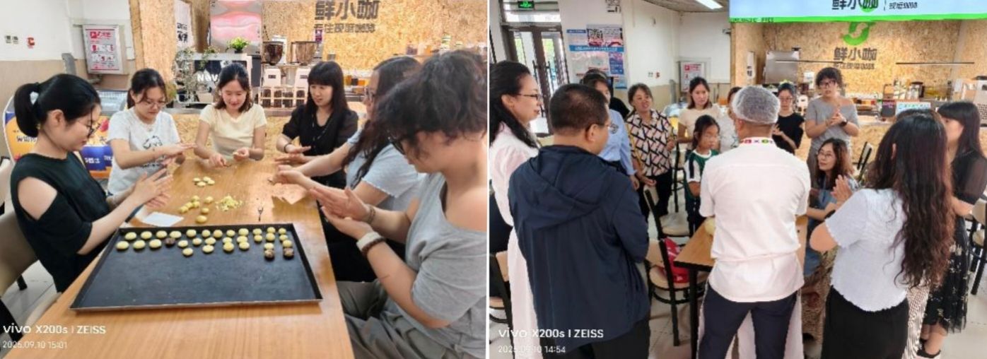 随后进行的创意糕点手作体验将活动推向高潮。在专业烘焙师的指导下,教师们分组协作,亲手制作各式精致甜点。从制作到装饰,从称料到烘烤,大家在欢声笑语中体验了手工制作的乐趣,更在合作中增进了彼此的情谊。现场香气四溢、笑语不断,一份份精心制作的糕点不仅是对节日的庆祝,更是对教育初心的甜蜜礼赞。