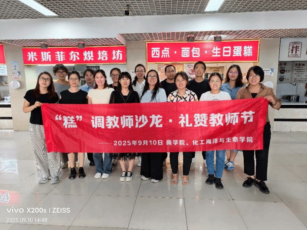 躬耕教坛守初心,跨界交流谱新篇。在第 41 个教师节来临之际,为致敬辛勤耕耘的教育工作者,打破学科壁垒、丰富校园文化生态,2025 年 9月10 日下午,商学院工会与化工海洋与生命学院工会携手,于美食广场米斯菲尔烘焙坊温情启幕“‘糕’调教师沙龙・礼赞教师节”活动,为两院教师搭建起深度对话、协同共进的温馨平台。