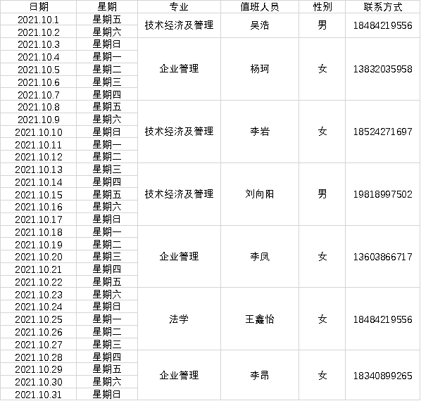 按照相关文件要求,同时发挥党员模范带头作用,现将2021年10月学院研究生工作室值班安排如下: