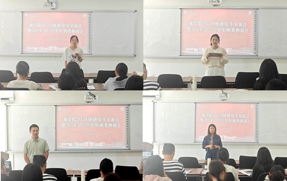 携手共进,展望未来。9月3日上午,商学院在C03-205会议室举办2024级研究生新生见面会暨班委换届会,学院副院长洪勇、专业教师王昱、学办主任王常有和学院全体研究生参加会议。