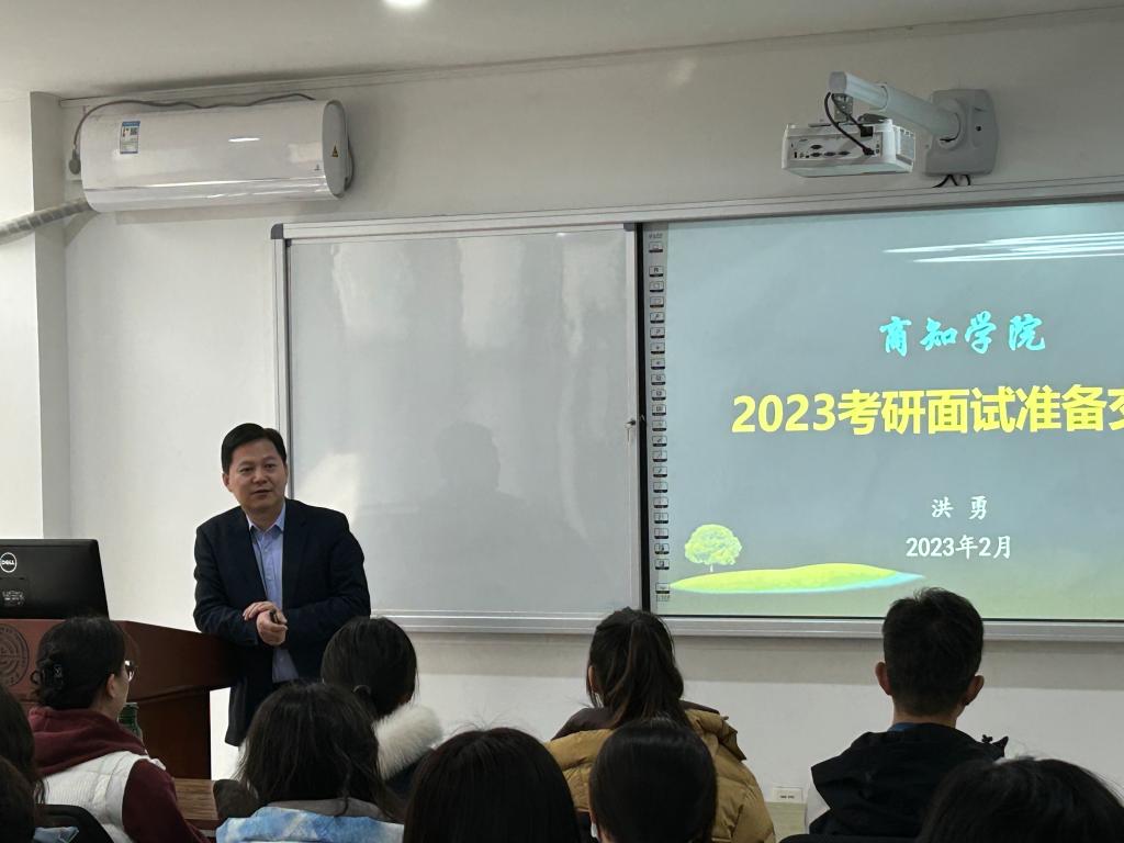为助力学院2019级学生备战考研复试,帮助同学们了解考研复试内容和流程,提升商知学子复试竞争力,2月28日上午,商学院、知识产权学院在C03-205会议室举办考研复试指导交流会,特邀学院副院长洪勇教授从面试评委老师角度为考研同学带来精彩分享。