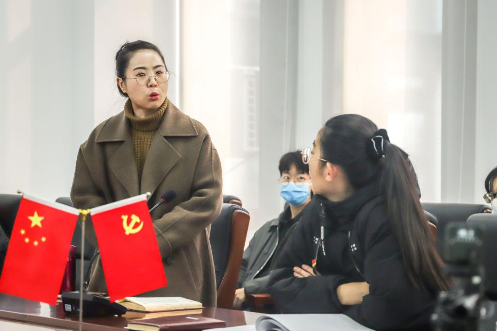 随后,支部联系领导、校区总务部副部长张婷婷老师对本次组织生活会进行总结点评。张婷婷老师表示,很高兴能够受邀参加本次组织生活会,商知产本师生纵向党支部能够严格按照上级党组织要求,认真细致准备,充分发扬民主,批评与自我批评到位,真正做到红脸出汗,达到了预期效果。希望支部成员再接再厉,对查摆问题和提出的意见认真梳理研究,以整改落实成效开创支部事业发展新局面。最后,支部全体师生党员起立共唱《没有共产党就没有新中国》。