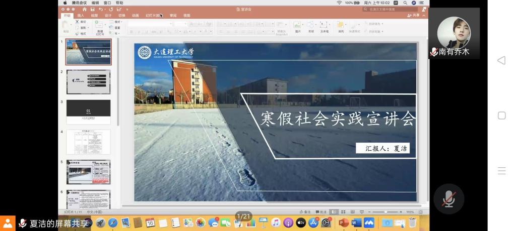 受疫情影响,本次寒假社会实践的内容和开展形式相较以往稍有不同。因此,针对此次实践,同学们的自主发挥空间很大。针对前期同学们提出的问题,商学院、知识产权学院团委社会实践部部长夏洁从前期立项及注意事项、实践过程、中期纪实内容要求、结项要求四方面进行了详细介绍。最后,由肖启老师进行动员及总结。肖启老师首先为同学们讲述了社会实践活动的意义,并重点针对“母校行”这一实践类别向参会同学分享经验,鼓励同学们积极参加本次寒假社会实践活动,并表示学院团委将全力提供支持与帮助。