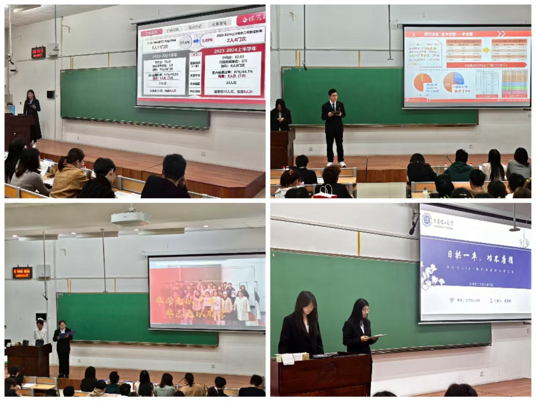 躬身耕耘当下事,矢志奋进新征程。各班答辩代表依次登台,从班级基本情况、学风建设举措、学风建设成果、目前问题不足、未来建设规划等方面,汇报展示各自班级的学风建设情况。在提问环节,评委老师精准聚焦各班学风建设的痛点难点,给予针对性指导和建议,鼓励各个班级将“优良学风班”从一项班级荣誉内化为一份笃行不怠的集体承诺与行动自觉。