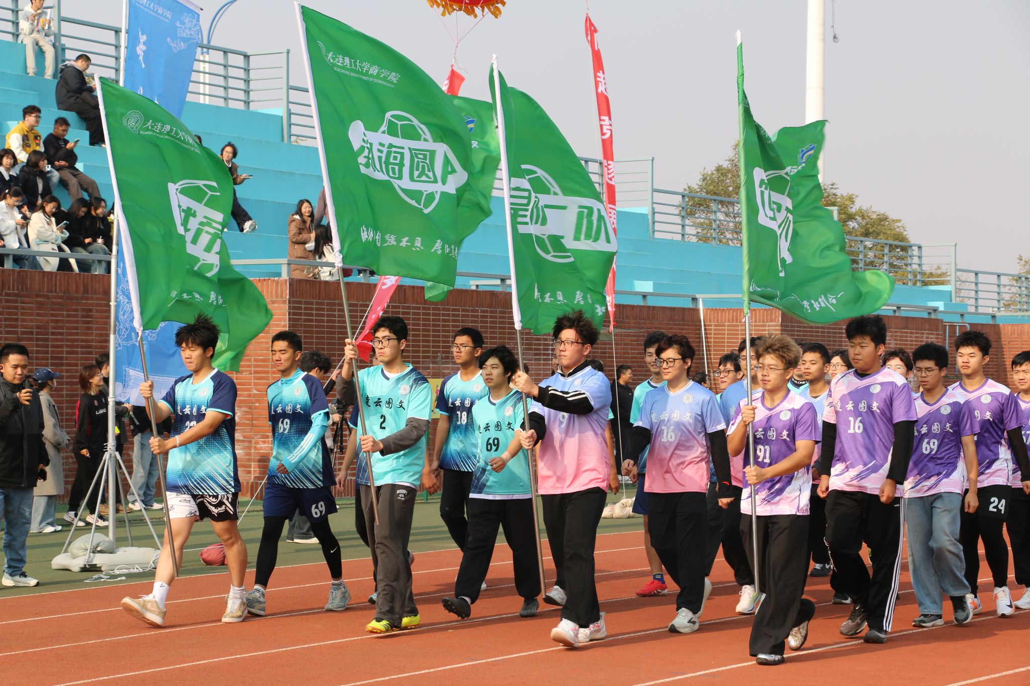 现场观众热情高涨,他们的欢呼与掌声贯穿整场开幕式,为“商超”足球联赛的开启营造出活力满满的氛围,充分展现出商院学子对体育精神与校园活动的热忱支持。
