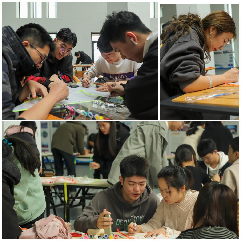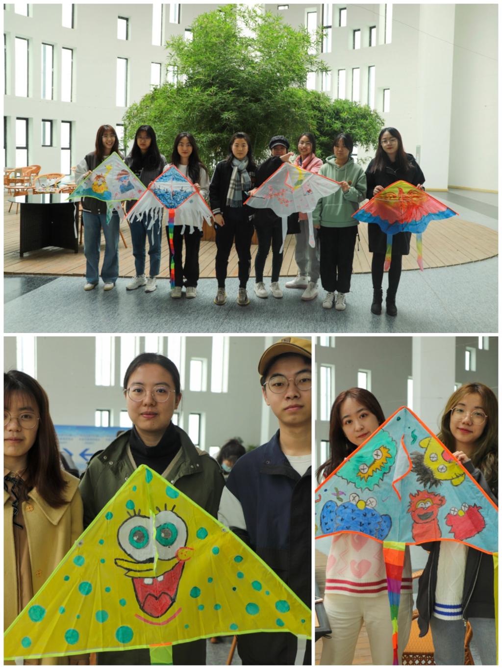 各参赛小组成员尽情创作,绘制自己的创意作品,或俏皮,或素雅,或清新明丽,还有些同学将自己的心愿写在风筝上,色彩交汇,溢满期许。除了创意设计,本次活动更重要的特点在于团队合作,2-4人组成一个小组,从图案选定、设计分工再到合作绘制,各小组成员配合默契,各抒己见,体现出了高度的团队精神。