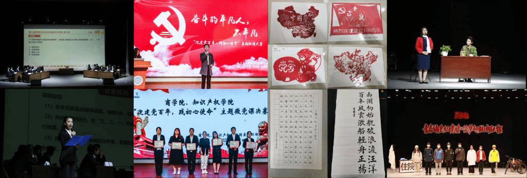 今年是中国共产党成立100周年,在全党开展党史学习教育,是党中央立足党的百年历史新起点,统筹中华民族伟大复兴战略全局和世界百年未有之大变局,为动员全党全国满怀信心投身全面建设社会主义现代化国家而作出的重大决策。为深入学习贯彻习近平总书记关于党史学习教育的一系列重要讲话和重要指示精神,扎实推进大学生党史学习教育,商学院、知识产权学院紧密围绕学校党委决策部署,研究制定《商学院、知识产权学院“学思践悟守初心,献礼百年担使命”党史学习教育方案》,坚持学思践悟并行,发挥党团联动优势,推动党史学习教育走深走实,营造学院浓厚的党史学习教育氛围。