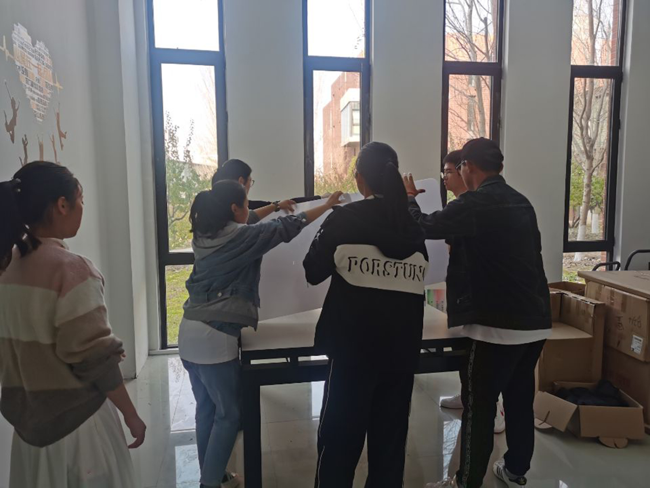 点滴入手,助力圆梦。为创造干净整洁的学习环境,营造良好学习氛围,助力考研学子圆梦,10月29日,商学院、知识产权学院团委学生会对学院一楼走廊桌子进行优化改造。通过加装隔板,粘贴励志贴纸等形式,让考研学子在繁重的备考过程中感受到学院的关怀。