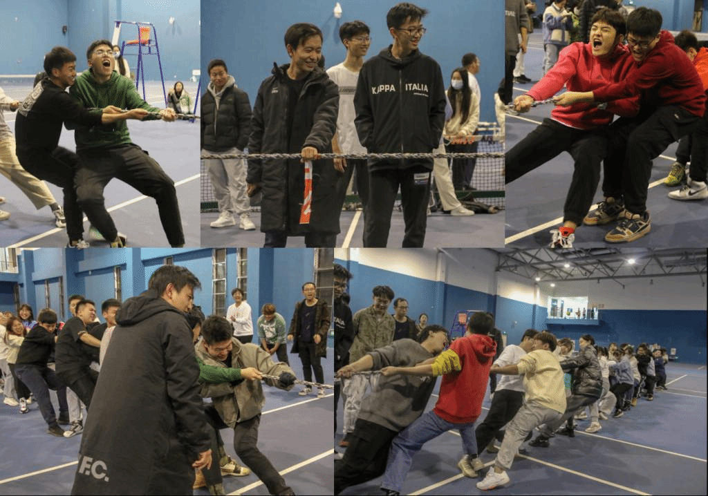 跳绳比赛以班级为单位,共有来自16个班级的16支队伍参赛。比赛中,各位参赛队员无不精神抖擞,意气风发,一个个轻盈腾空跃起的身影勾勒出青春活力的画幅。拔河以年级为单位,来自3个年级的60名同学参赛。赛场上,运动员们个个斗志昂扬,拼尽全力,用他们的力量和汗水展现超强的凝聚力和战斗力。