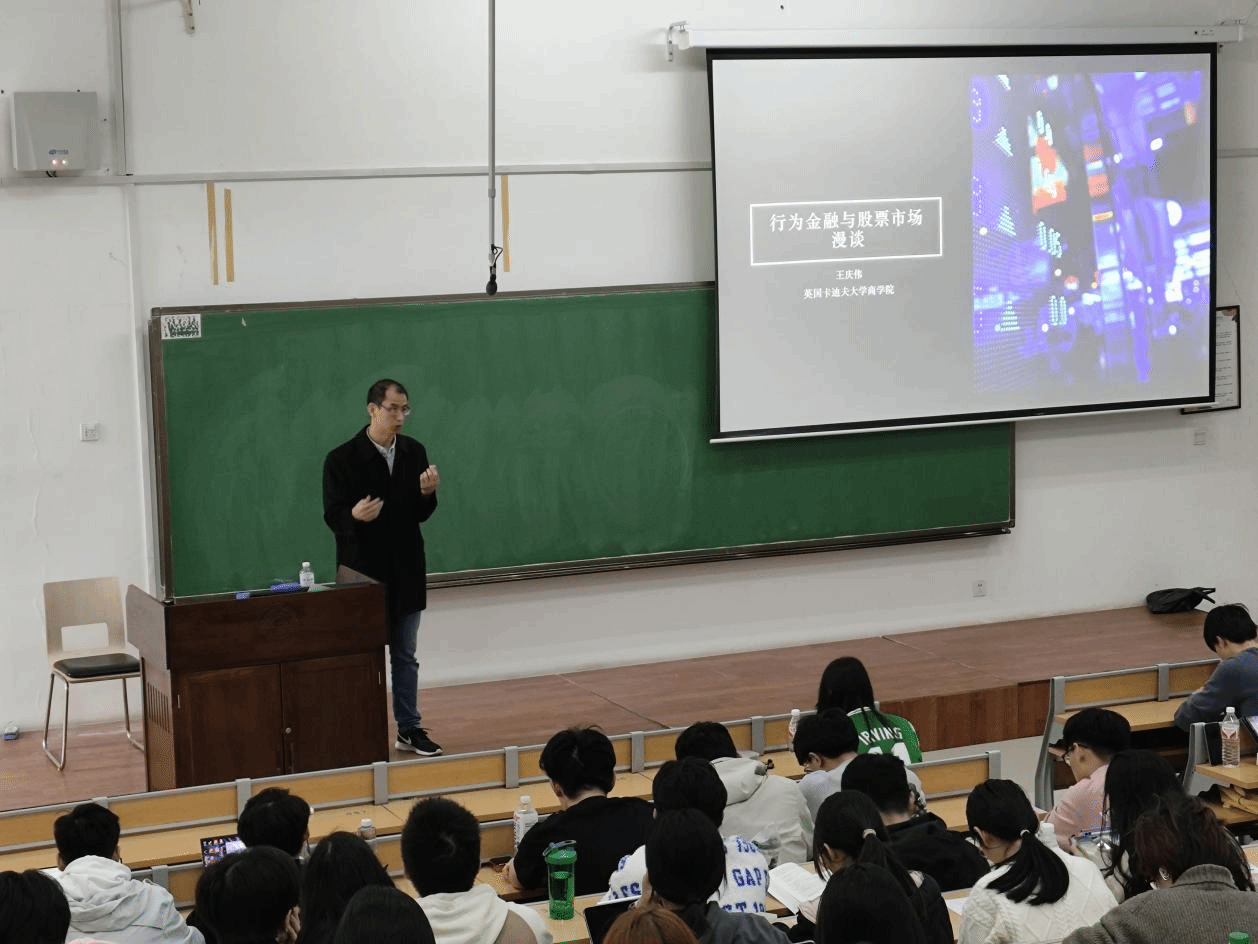 3月22日下午,英国卡迪夫大学商学院金融学讲座教授、卡迪夫大学中国商业研究中心主任、卡迪夫金融科技研究中心联合主任,British Accounting Review编委,European Journal of Finance,Finance Research Letters副主编,以及European Journal of Finance“金融科技和金融市场”特刊的客座主编王庆伟在A01-N205为商学院2022级本科生讲授了经济与商务导论课,主题为“行为金融研究”。
