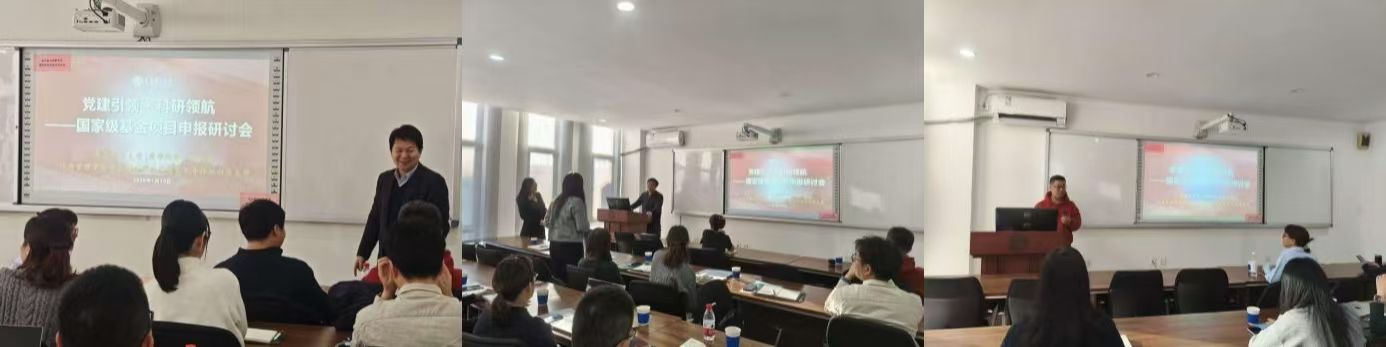 为深入推进党建与业务工作“一融双高”,切实提升国家级基金项目申报质量,2026年1月10日,我院教工党支部与经济管理学院信息与决策技术研究生导师纵向党支部携手举办国家级基金项目申报研讨会。