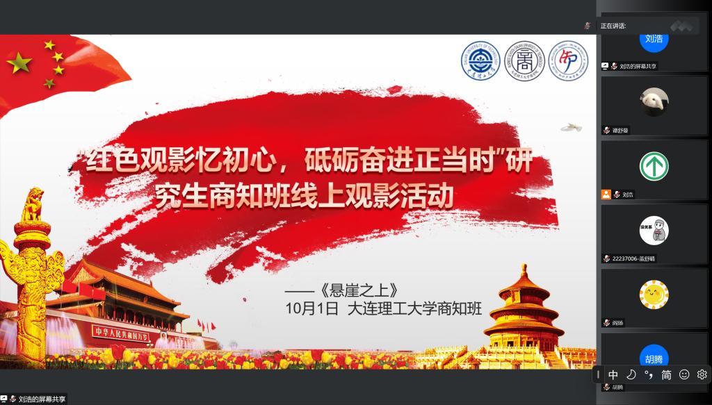 10月1日晚,商学院、知识产权学院研究生党支部联合团支部共同举办红色观影活动,组织党支部、团支部同学集中观看红色电影《悬崖之上》,重温红色岁月,传承红色基因。