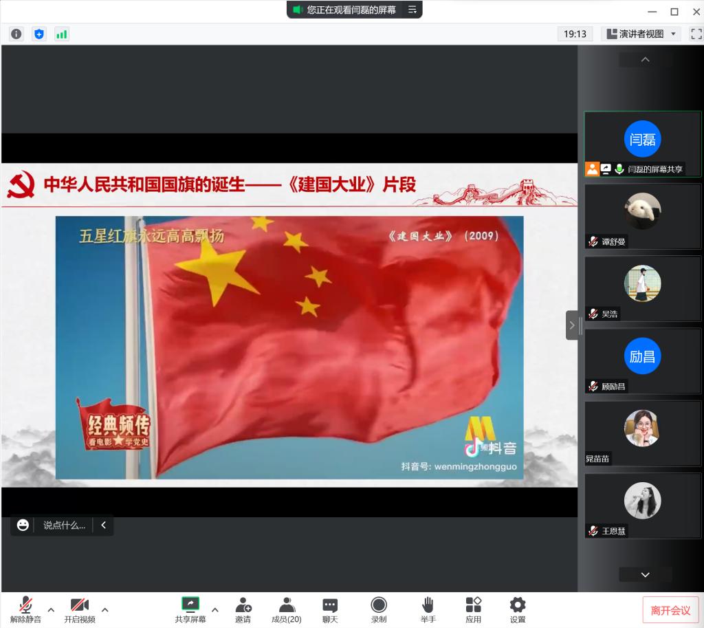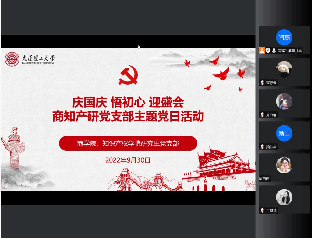 9月30日,商学院、知识产权学院研究生党支部通过腾讯会议开展“迎国庆、悟初心、迎盛会”党日活动。